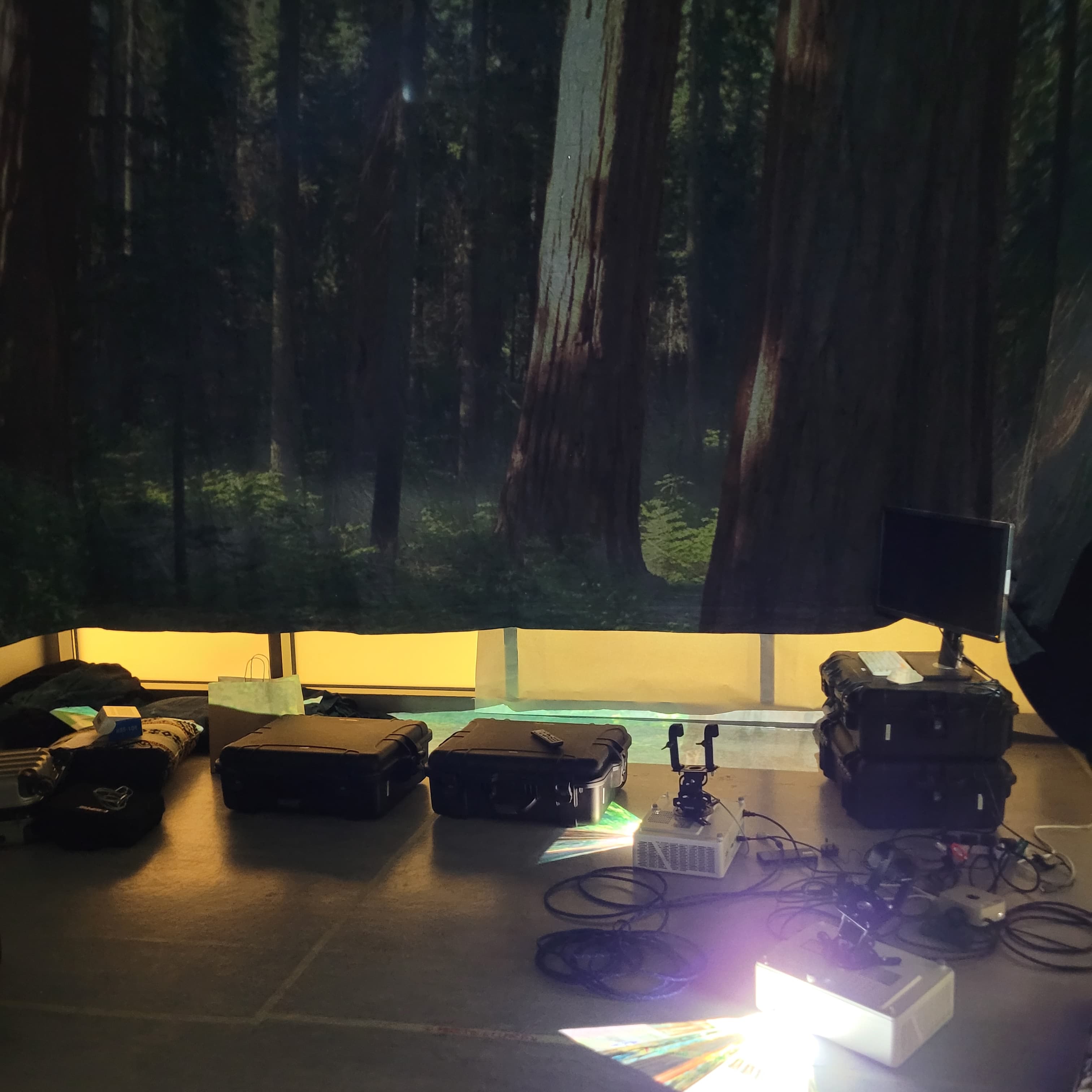 A glimpse into the immersive environment — projection, sound, and stillness converging in a single room.