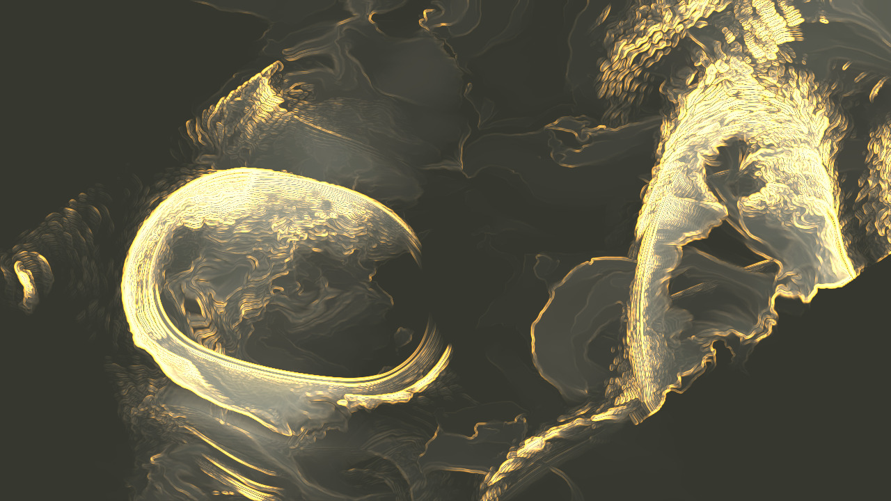 Luminous, slow-moving currents in warm tones. Gentle presence in the space.